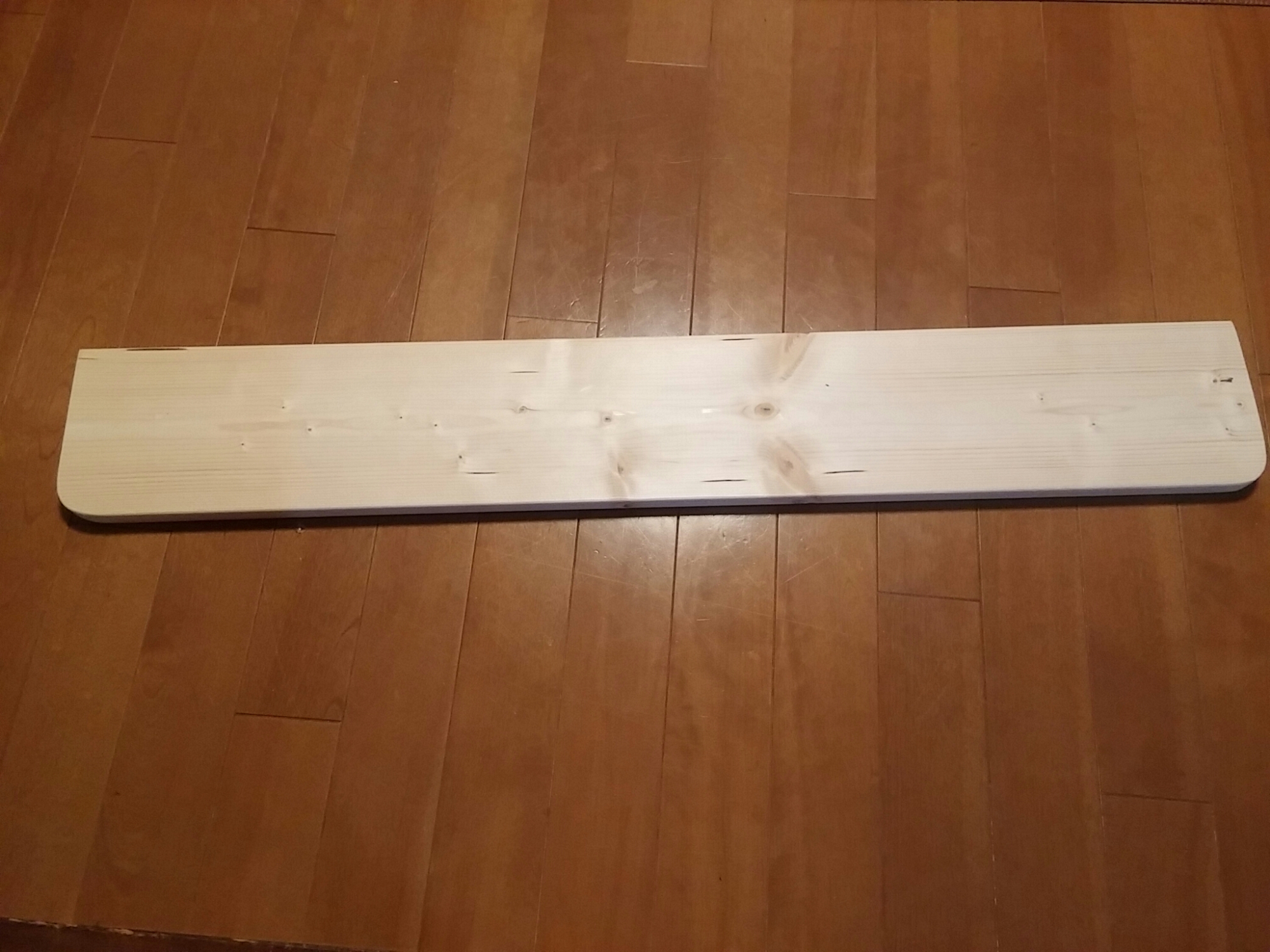 ホームセンターで板を買って、希望サイズにカットしていただきました。コーナーに丸みを持たせ角にヤスリをかけるようお願いしました。